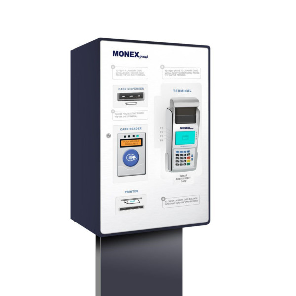 - Card dispenser – the kiosk can issue a newly purchased laundry smartcard